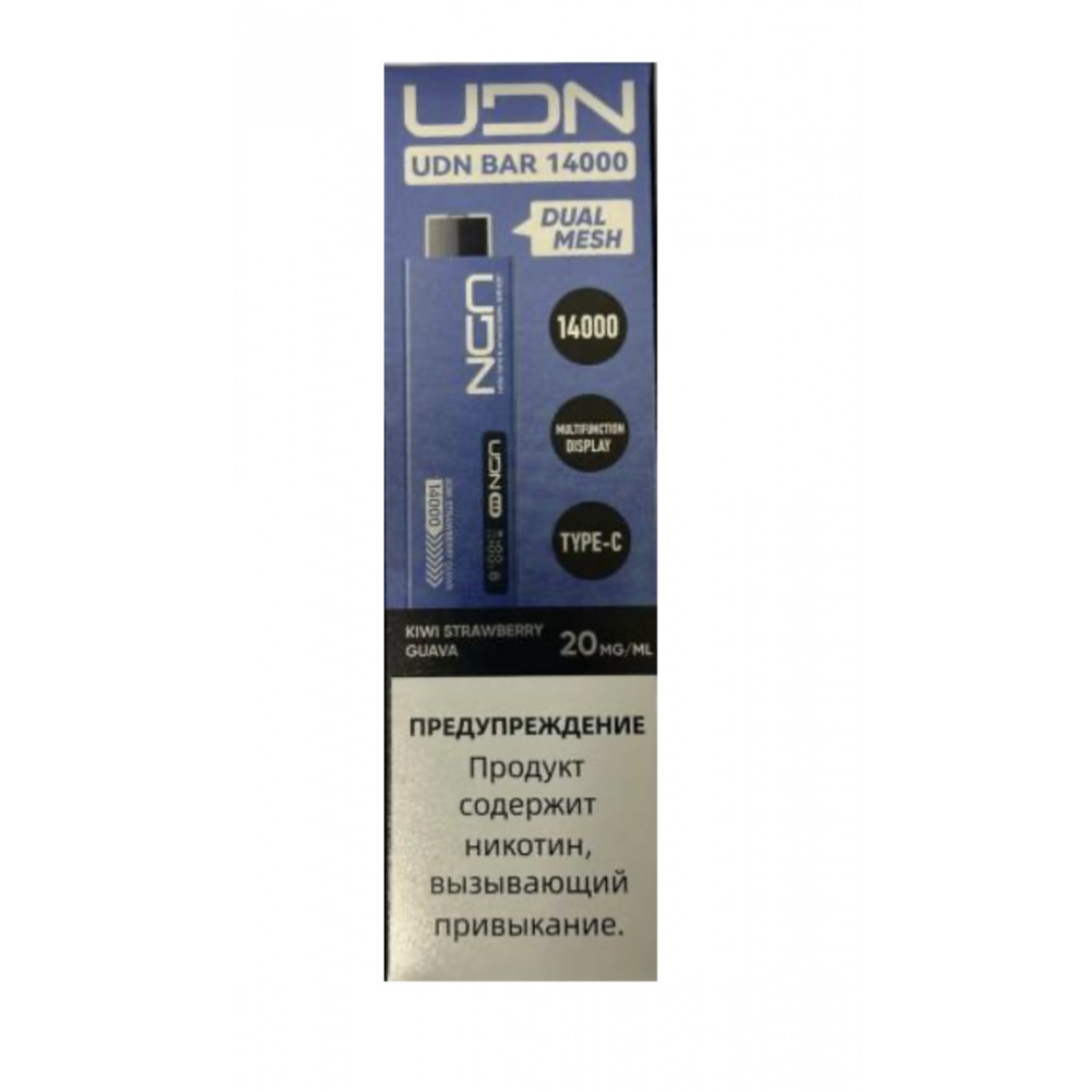 UDN видыBar 14000 UDN вкусыКиви Клубника Гуава UDN количество в блоке10 шт
